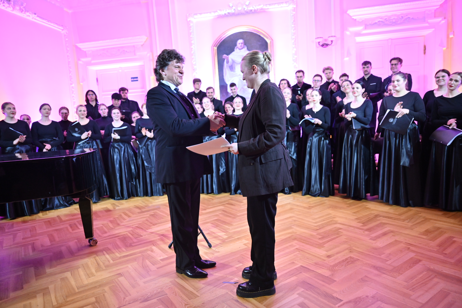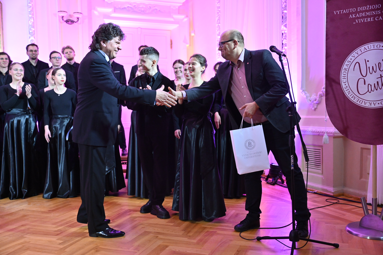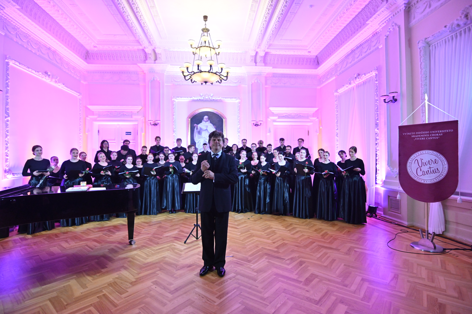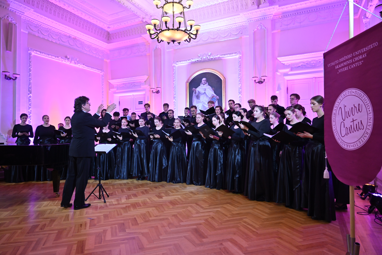 Šeštadienį Vytauto Didžiojo universiteto (VDU) Didžiojoje auloje vyko ypatinga šventė – VDU akademinio choro „Vivere Cantus“ 10 metų kūrybinės veiklos jubiliejus. Renginys sutraukė choristų, buvusių narių, studentų ir muzikos mylėtojų bendruomenę, kurie kartu pasidžiaugė dešimtmečio pasiekimais ir įkvėpiančia choro kelione.