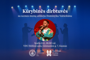 Spalio 8 d. 18.00 val. Vytauto Didžiojo universiteto Didžiojoje auloje (Gimnazijos g. 7, Kaunas) vyks kūrybinės dirbtuvės su scenos menų profesionalu Dominyku Vaitiekūnu. Kūrybinių dirbtuvių metu dalyviai lavins sceninį pasitikėjimą, mokysis improvizuoti, kurti autentišką ryšį su...